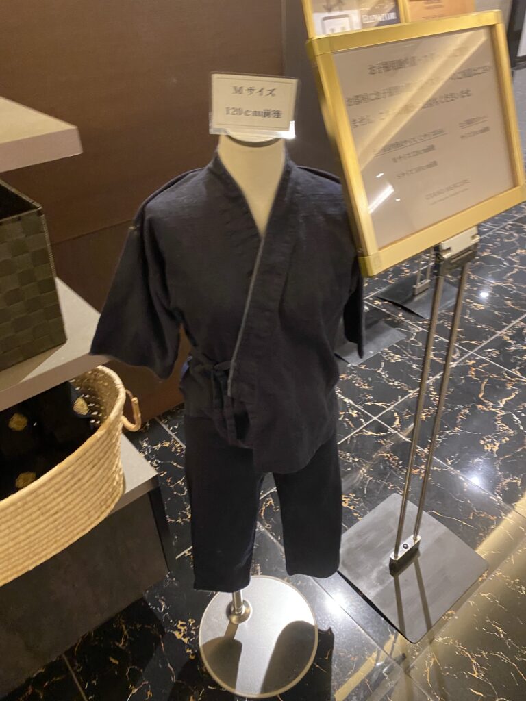 ホテルの作務衣を着ると旅行気分もアップしますね。