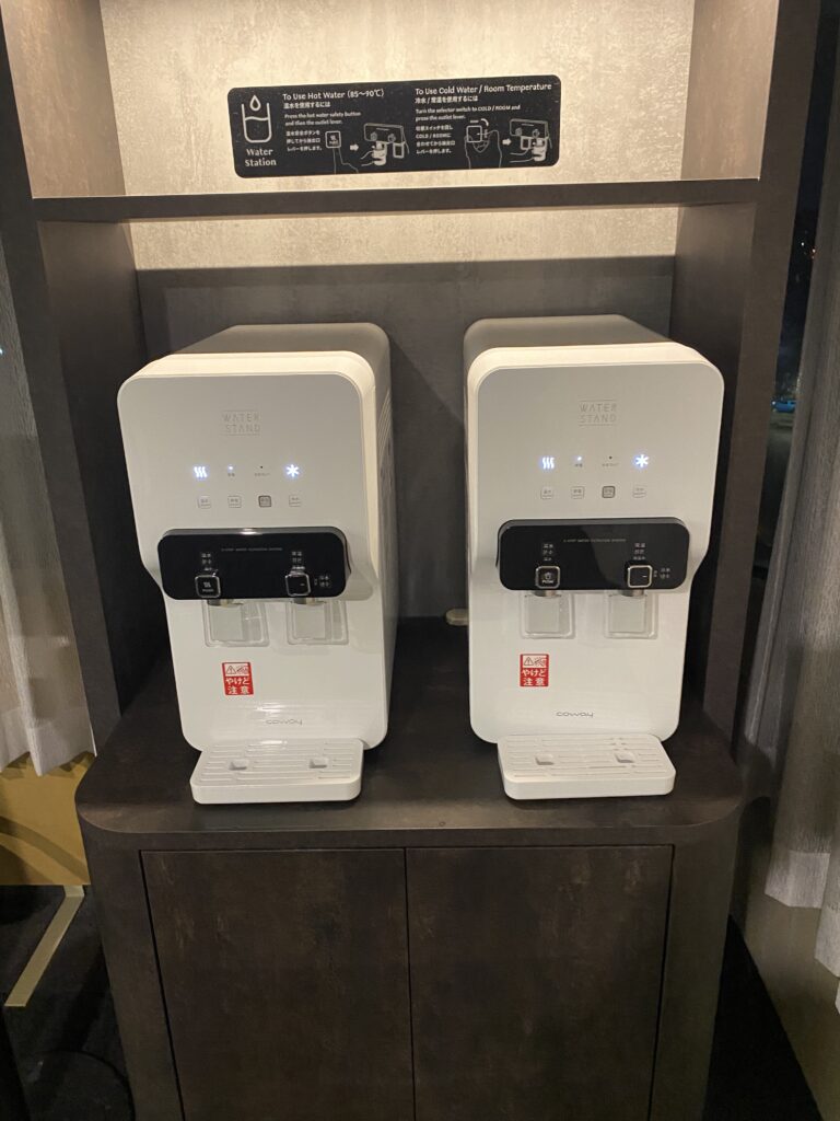 廊下にはウォーターサーバーが完備されているので夜中に飲み物に困りません。